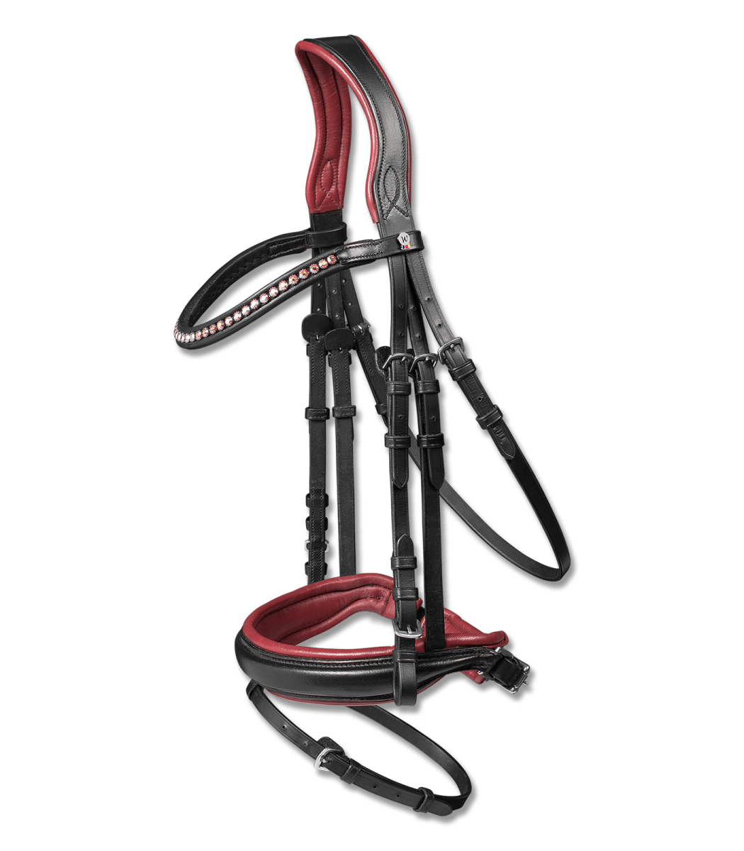 – Frontal en forme de vague orné de petites pierres rouges chatoyantes