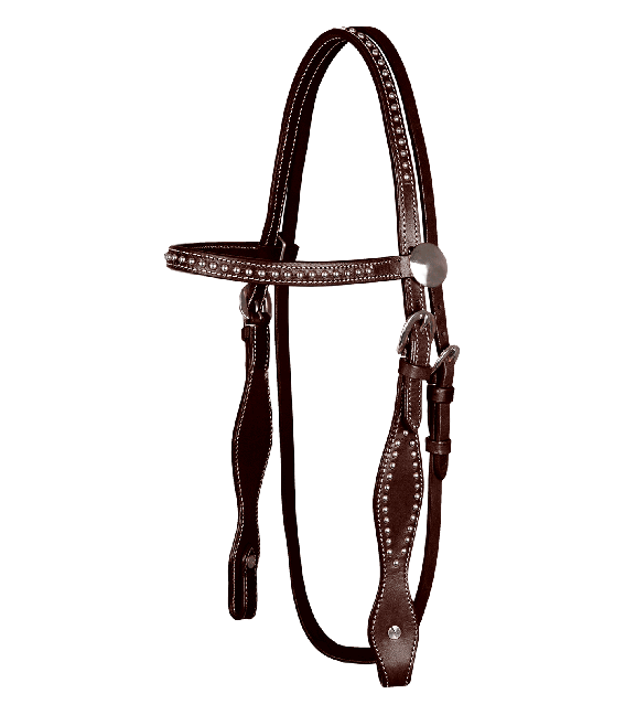 – Bridon western orné de rivets argentés – Têtière réglable des deux côtés – Avec système de vis Chicago – Cuir