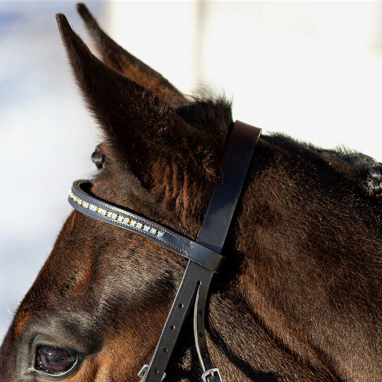 Une chaînette métal ajoute de l’éclat à ce bridon simple et classique.