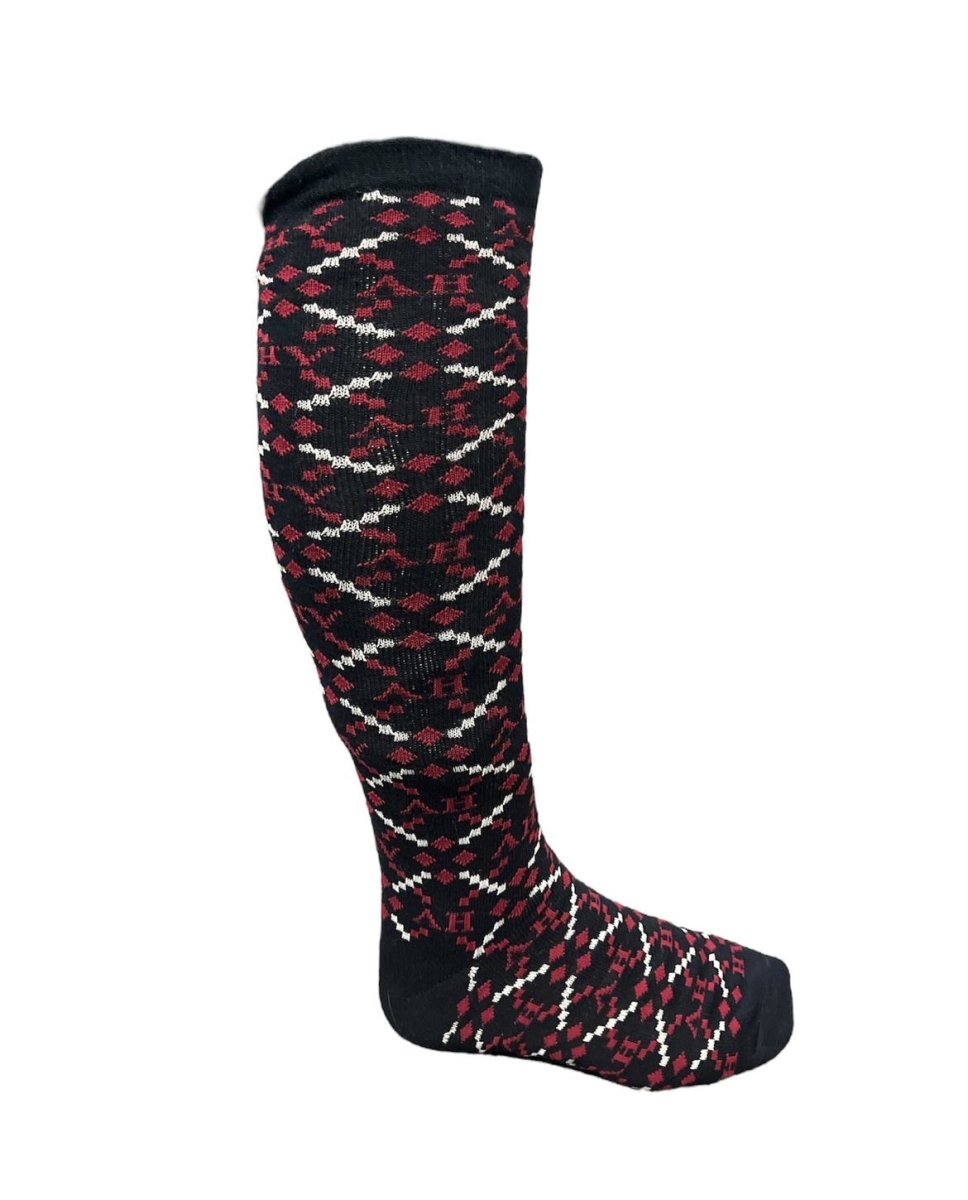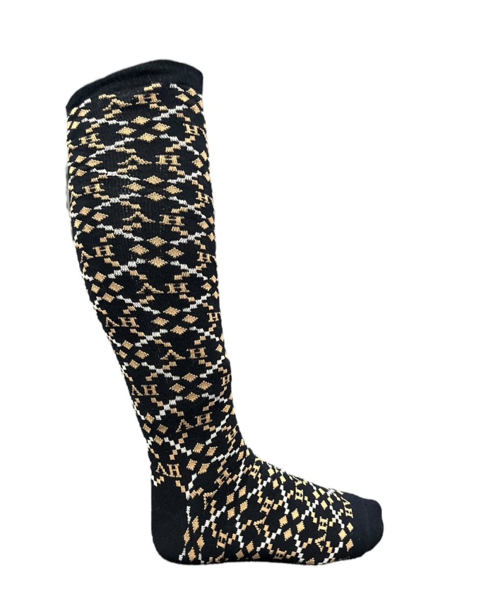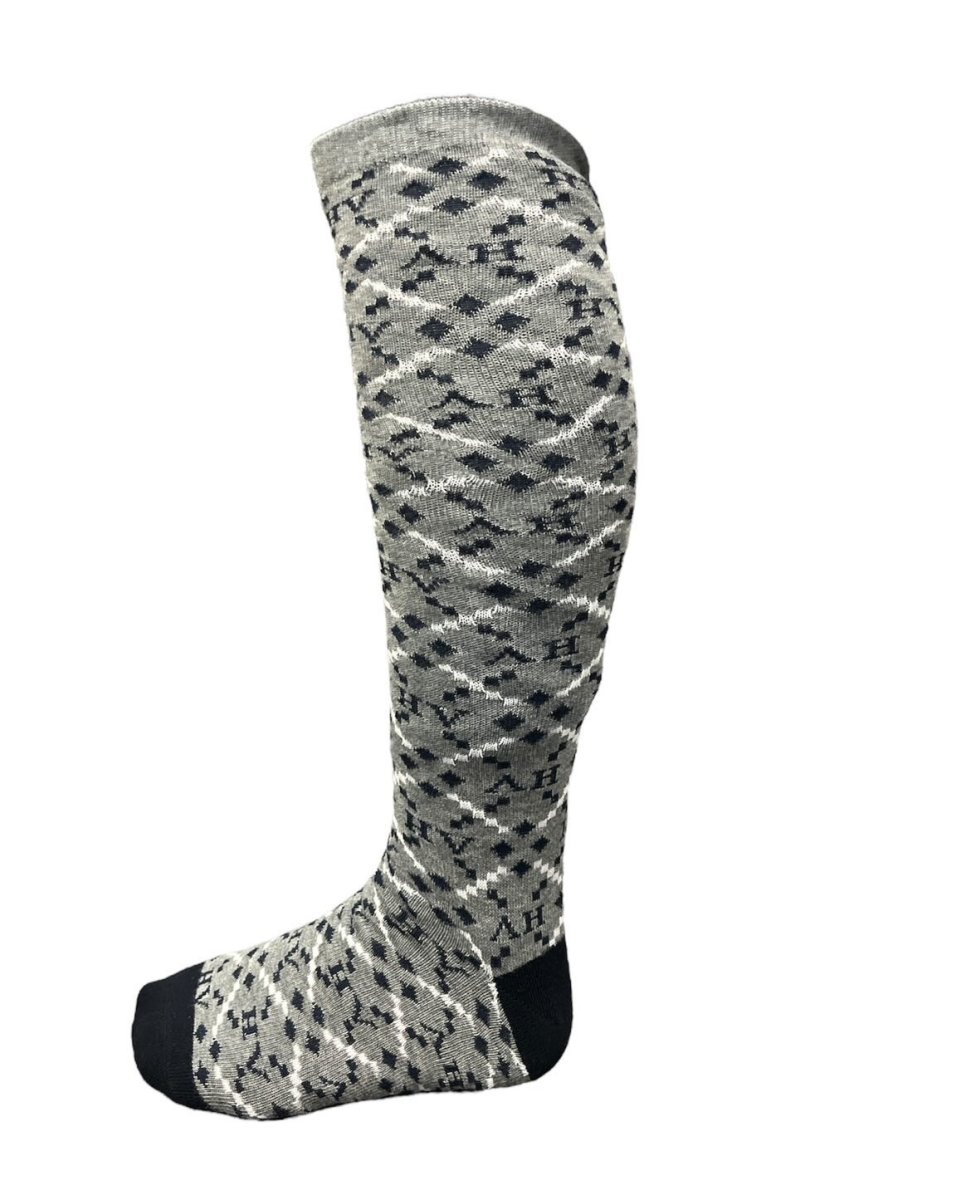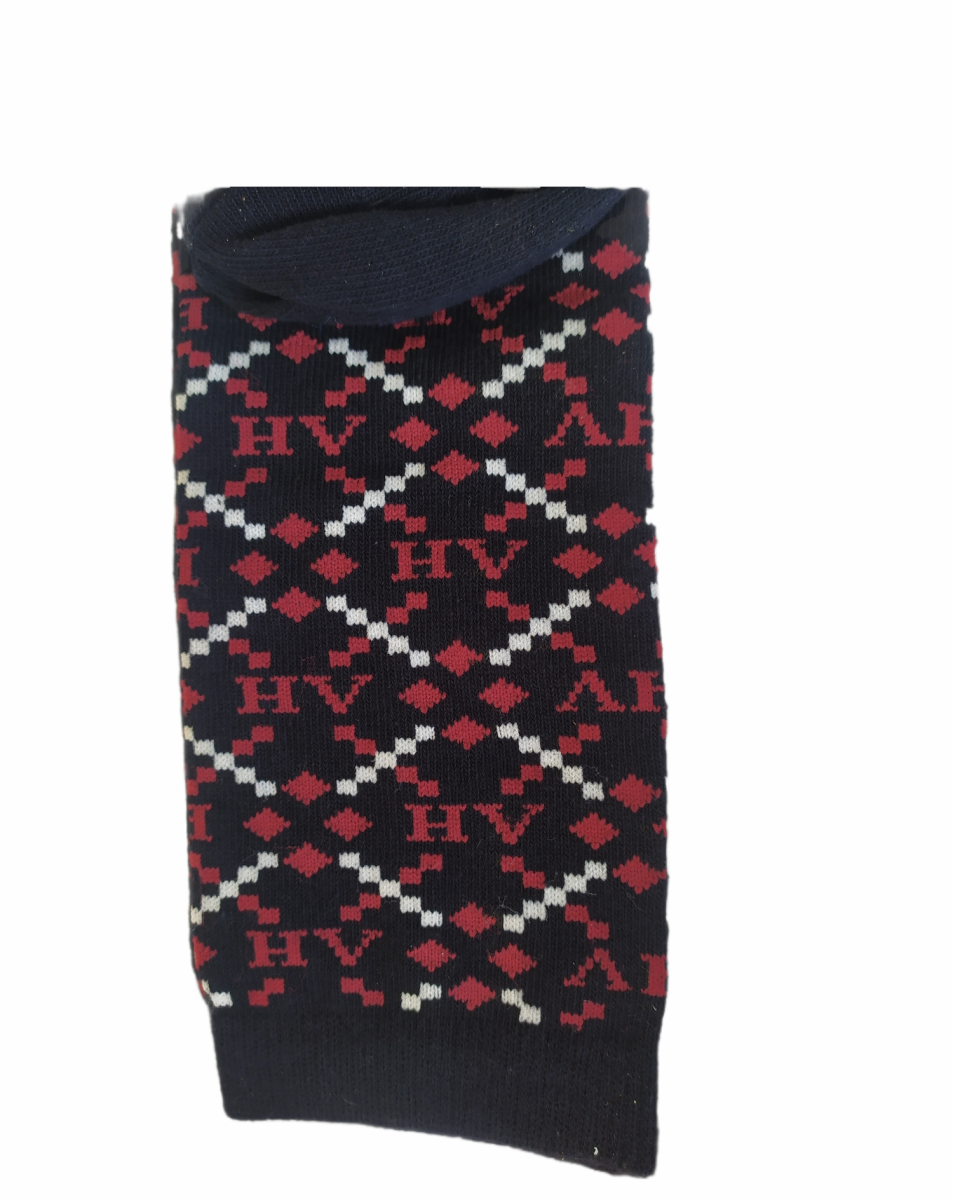 Chaussettes avec un motif à losanges nouveau et moderne avec logo HV Polo dans le motif et talon et orteil de couleur contrastée.