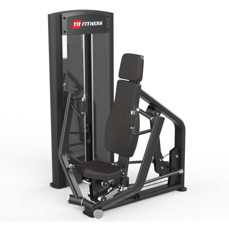 YR Fitness 61A04A Chest Press Converging features a natural pressing motion, adjustable seat, and multiple grip opt