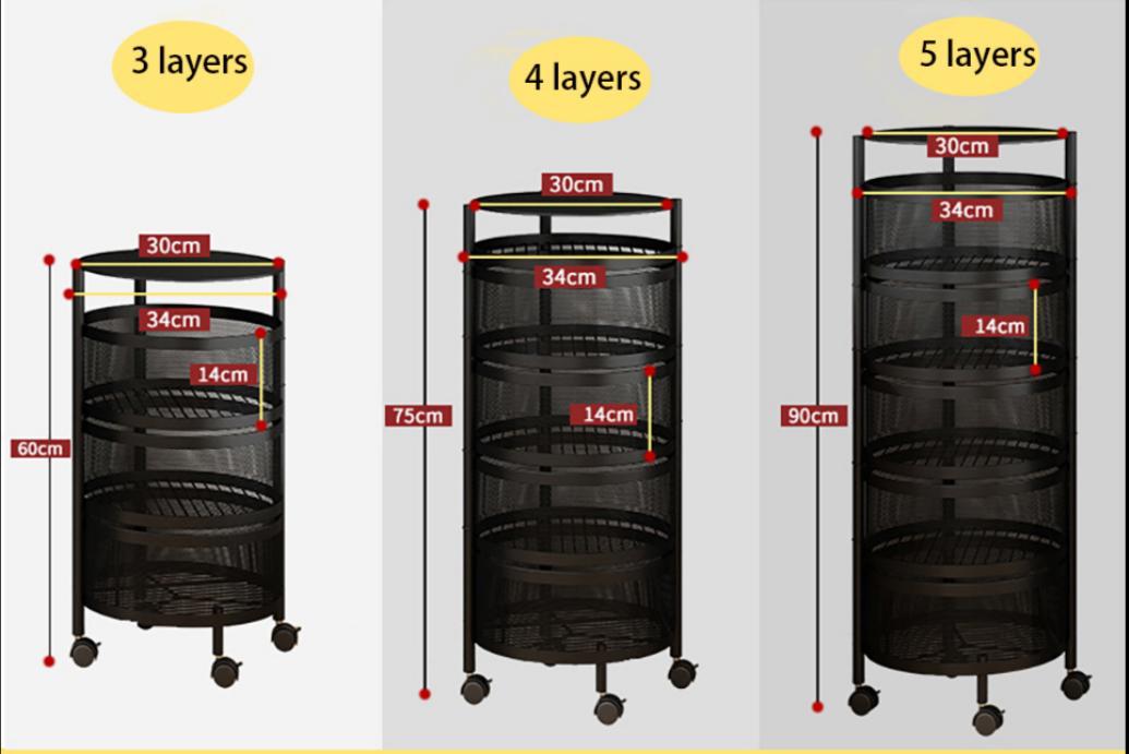 • L’étagère de cuisine multicouche rotative à 5 niveaux a un très grand espace de rangement, qui économise votre espace de plancher et optimise l’utilisation de l’espace.C’est une excellente solution de stockage de cuisine.Et assemblée est simple et pratique