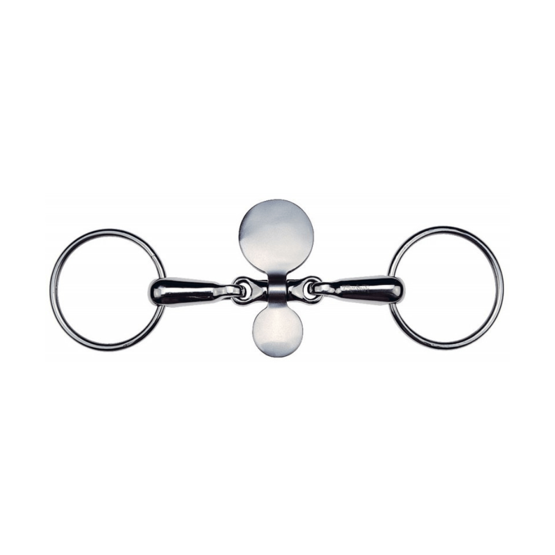 En inox, pour un usage d’anti-passe langue. S’utilise avec une muserolle assez serrée