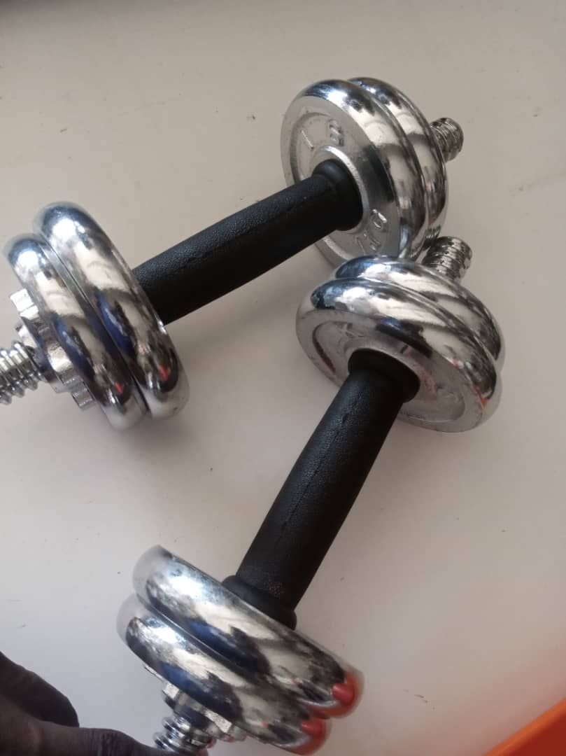 - Produit: Ensemble d’haltères en chrome de qualité supérieure de 10 kg.