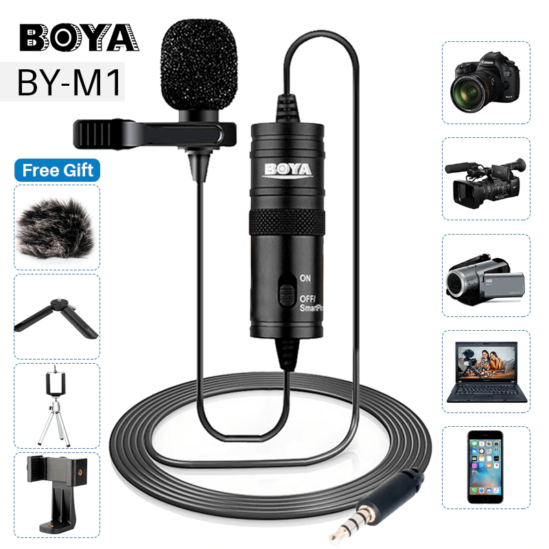 Avec 3.5mm prise et 1/4” Adapteur, connexion facile aux caméscopes, iphone, samsung portable ou d’autre smartphone.