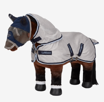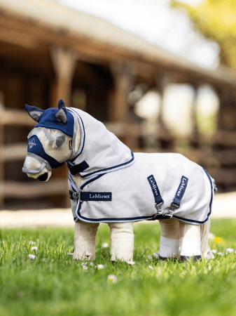 Cette chemise anti mouches Toy Pony est l’accessoire réaliste parfait à ajouter à votre collection LeMieux Toy Pony. Elle est fabriquée en mesh gladiateur – tout comme la version de taille réelle – avec de magnifiques bordures bleu marine et bleu brume.