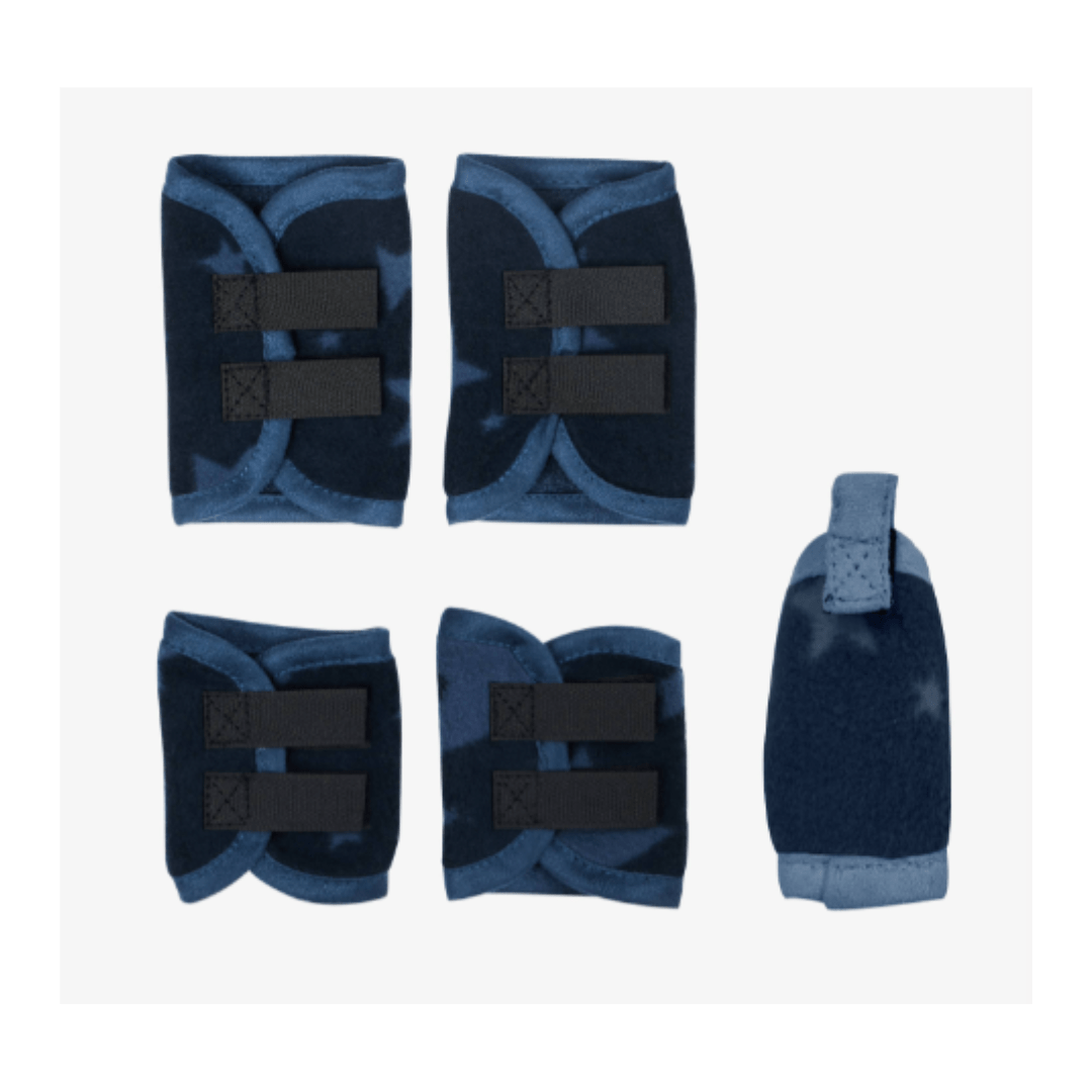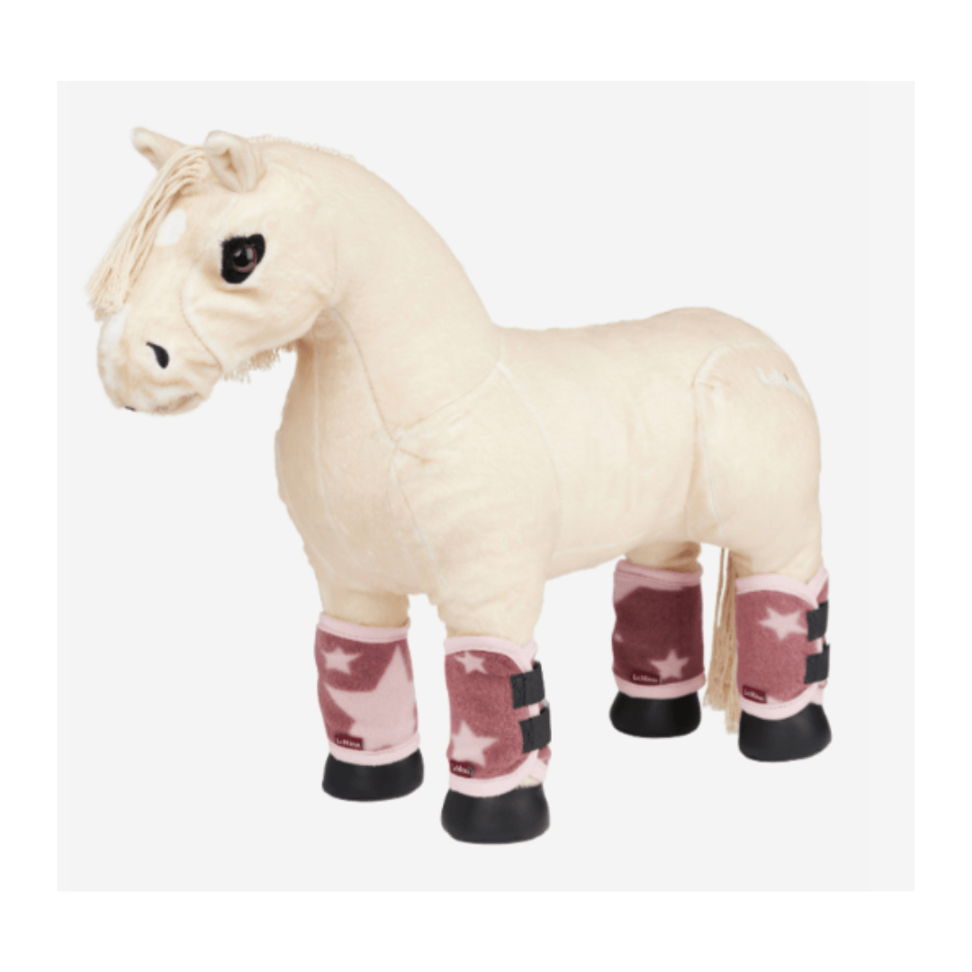 Complétez la tenue de voyage de votre poney jouet avec des protège-jambes et un protège-queue en polaire assortis.