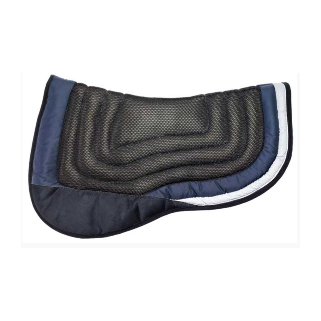La doublure en maille de caoutchouc permet non seulement une meilleure circulation de l’air, mais aussi des poignées, maintenant la selle et le tapis de selle en place.