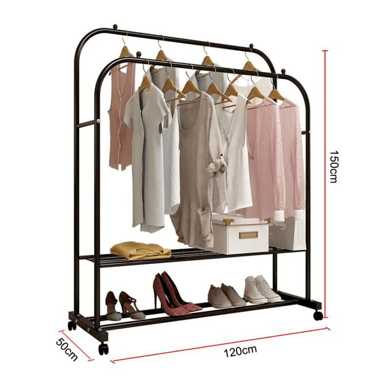 - Grand espace de rangement : Le design à double tige peut accueillir deux fois plus de vêtements pour répondre aux besoins de votre mode de vie.L’étagère inférieure peut également contenir plusieurs paires de chaussures