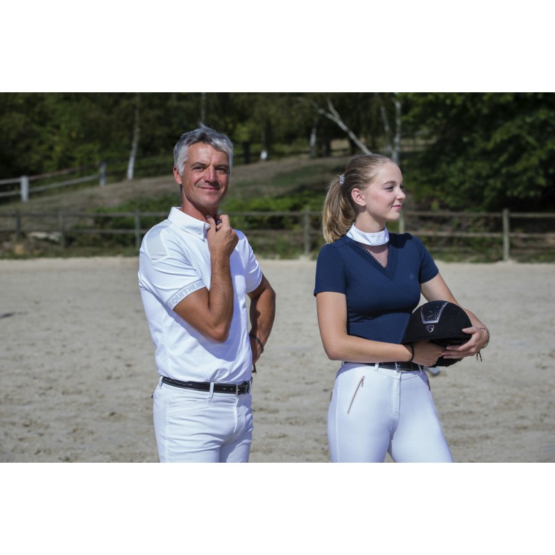 Polo de concours à col montant et à passant pour cravate.