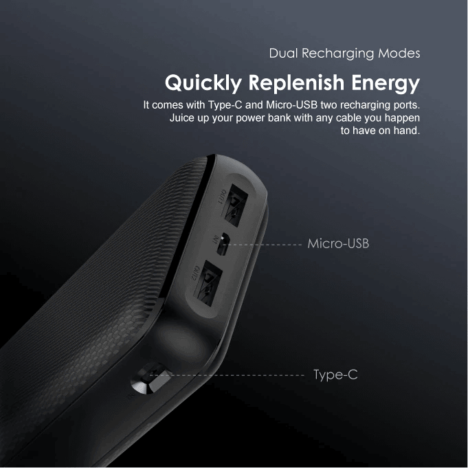 Banque d’alimentation Oraimo OPB-P202D Black By Air 20 000 mAh.