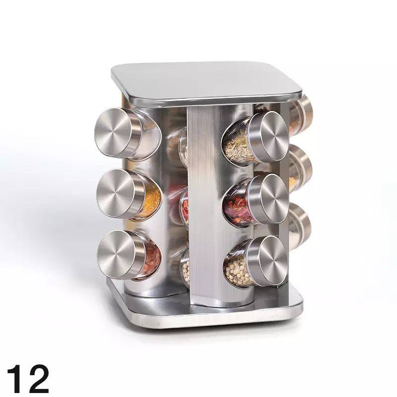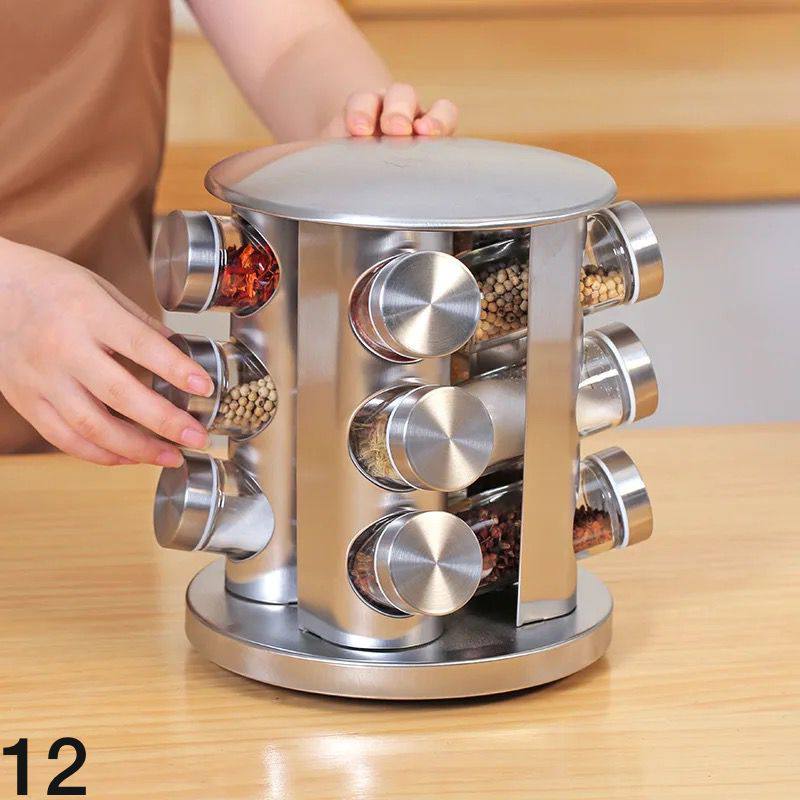 Présentoir à Épices,360°Étagères Rotatives,430 Acier Inoxydable Carrousel,Support de Stockage d’épices,12 Pots en Verre Épaissis avec Capuchon,Porte-épices, Rangement Autonome pour la Cuisine