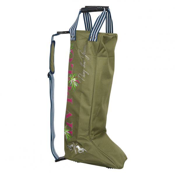 Sac pour ranger vos bottes, orné d’un motif imprimé, d’une lanière ajustable et de poignées courtes.