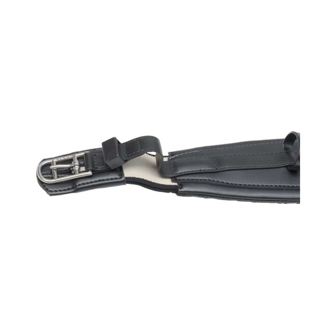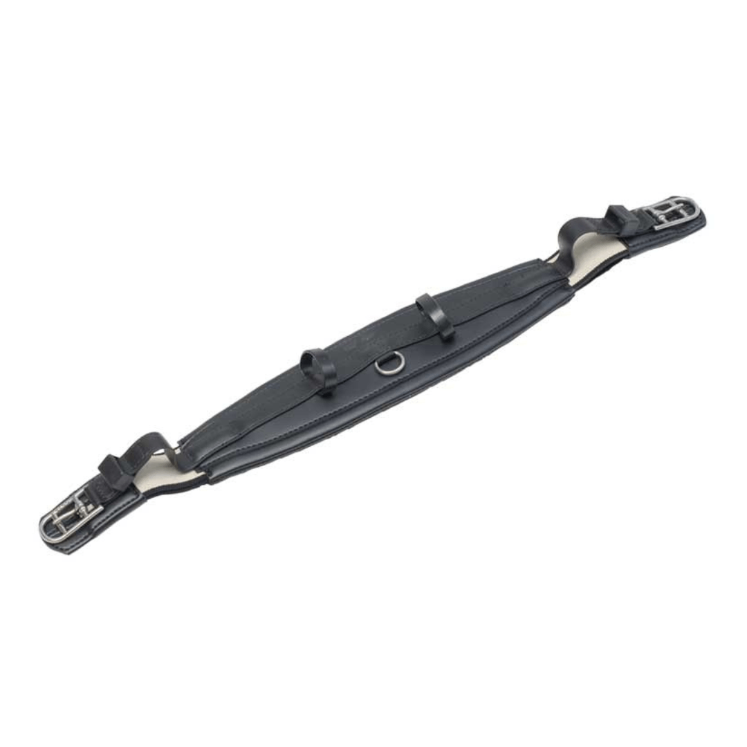 Excellente sangle synthétique élastique des deux cotés. La partie en contact avec le cheval est en nid d’abeilles qui permet un grand confort pour le cheval. Cette sangle dispose également d’un anneau central pour attacher une bricole ou une martingale.