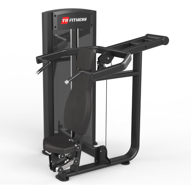 YR Fitness 61A01 Shoulder Press offers essential upper-body training with adjustable seating and dual-grip handles.