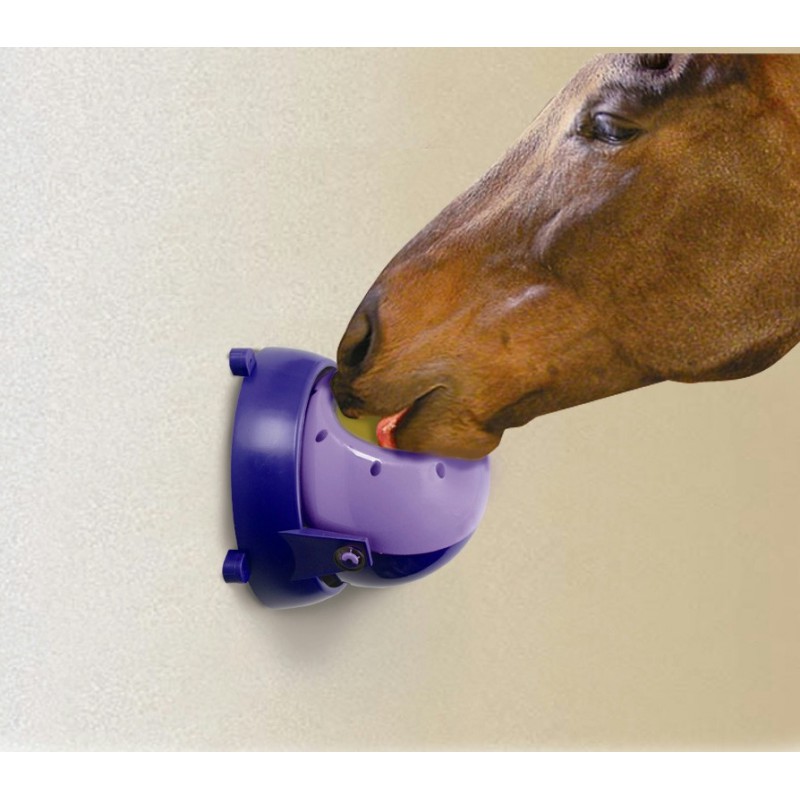 Le Tongue Twister est idéal pour les chevaux nerveux ou en box étroit. Il peut être utilisé avec un ou deux Little Likits. Pendant que votre cheval lèche le Likit, la balle se déplace, l’obligeant à rester plus longtemps à jouer pour obtenir sa récompense. A utiliser en box ou au paddock.