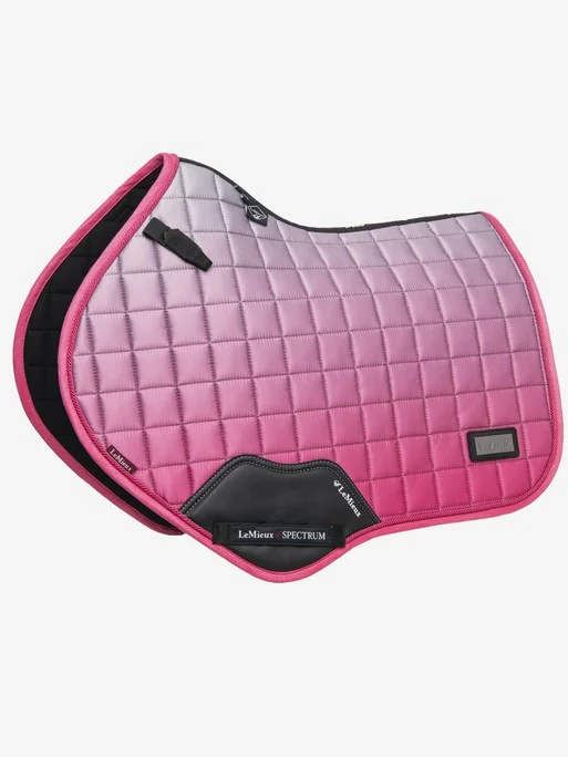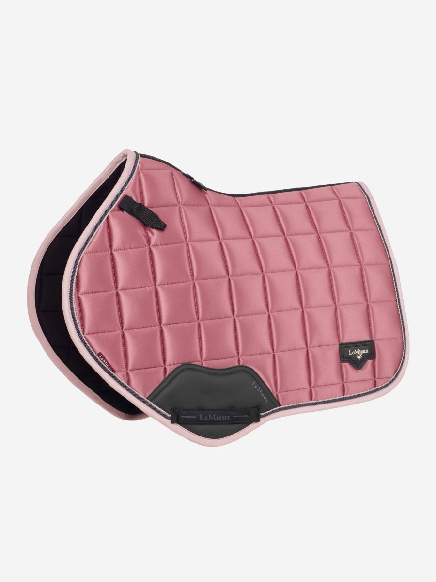 La zone de protection de la sangle en cuir PU texturé est complétée par un logo en relief et porte la sangle inférieure LeMieux signature habituelle avec ses boucles de verrouillage intérieures.
