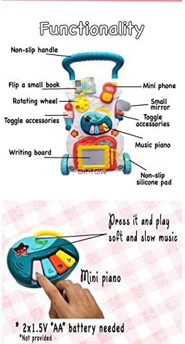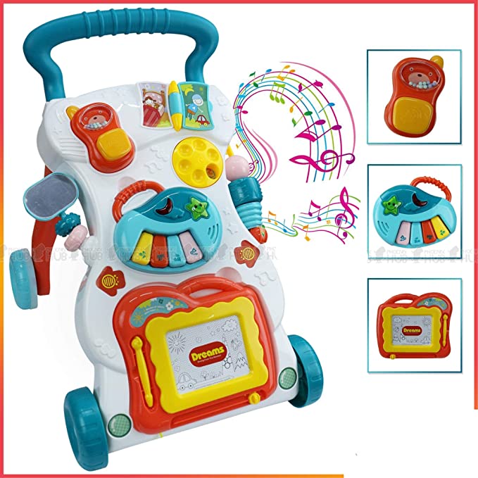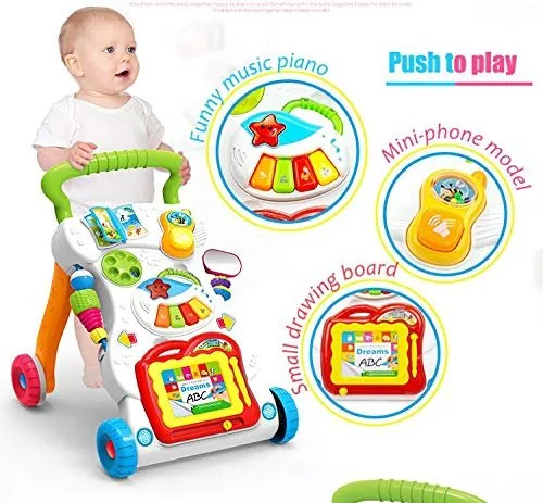 Ce trotteur aide au développement de divers sens des bébés comme la reconnaissance des couleurs, le développement musculaire, la capacité de mémorisation, la capacité de création, le développement auditif, le développement du toucher.