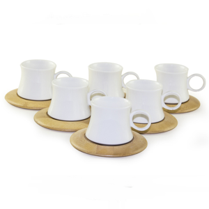 Petit thé en céramique 6 tasses avec 6 soucoupes en bambou