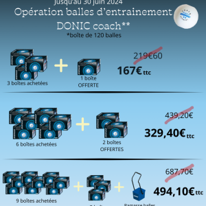 Opération balles d’entrainement Donic coach ** valable jusqu’au 30 juin 2024