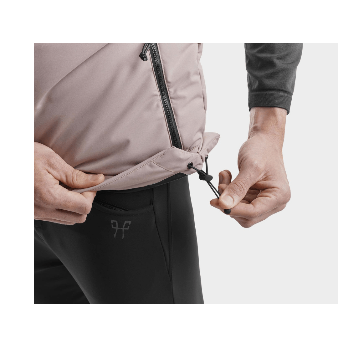 Le bas du vêtement s’ajuste pour limiter les infiltrations d’air.