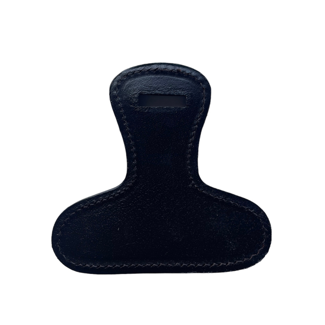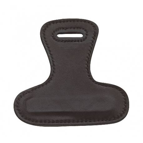 Fixation amovible pour croupière. Permet de fixer une croupière à une selle qui n’a pas d’anneau spécifique sur l’arrière du troussequin. Se glisse entre les coussins à l’arrière de la selle.