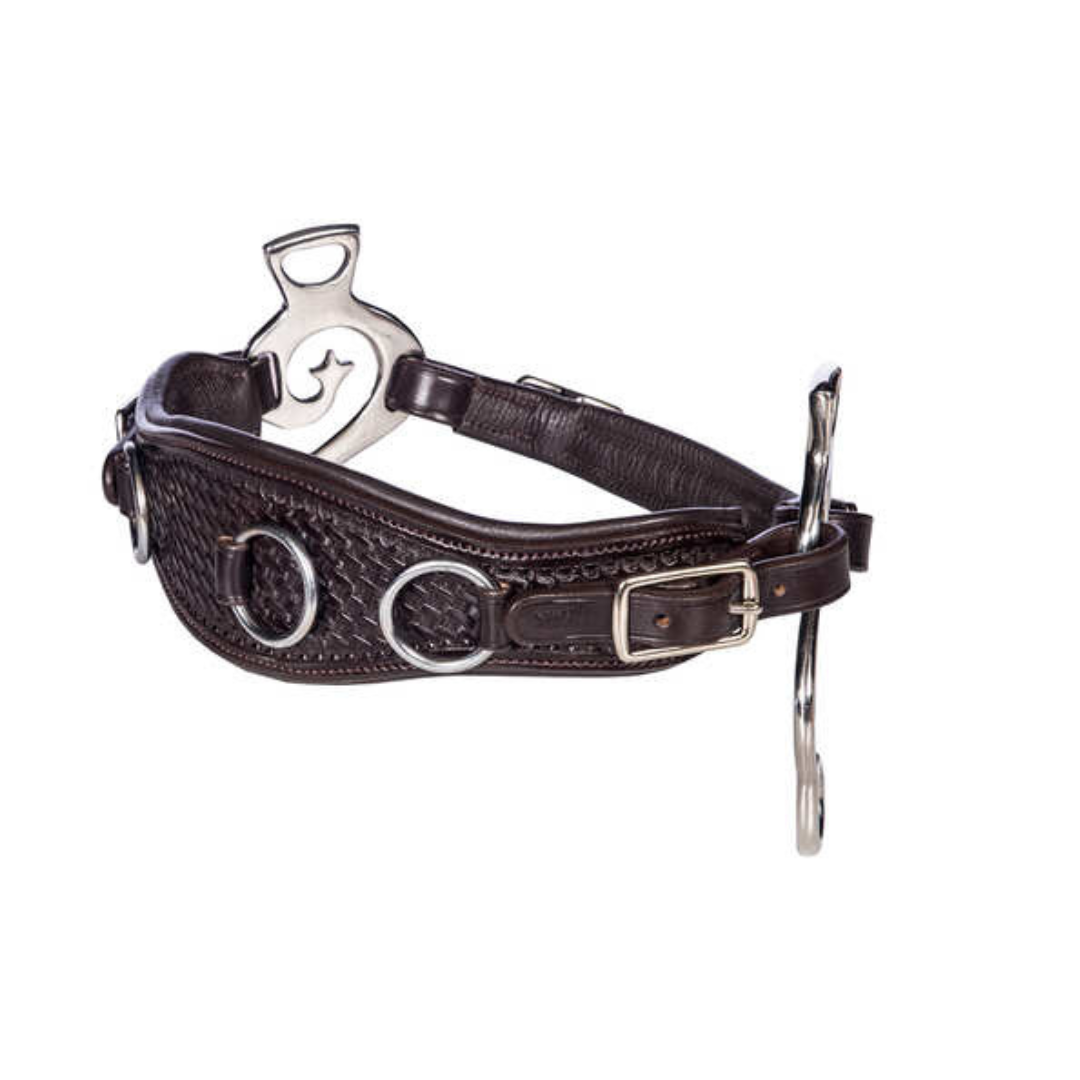 Hackamore en cuir anglais, finition gaufrée. Bien matelassé.
