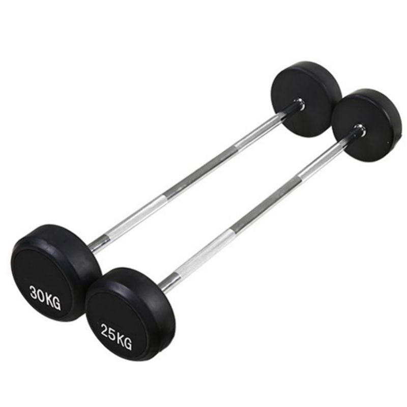 The BSR001S Rubber Round Head Barbell features solid steel heads with high-precisio